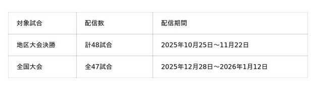 株式会社運動通信社(本社:東京都港区、代表取締役社長 CEO:若村 祐介、以下 運動通信社)とKDDI株式会社(本社:東京都港区、代表取締役社長 CEO:松田 浩路、以下 KDDI)および民間放送43社は2025年10月25日から、第104回全国高校サッカー選手権大会と地区大会決勝におけるライブ動画、アーカイブ動画およびハイライト動画を、運動通信社とKDDIが共同で運営するスポーツメディア「SPORTS BULL(スポーツブル)」の特設ページ(URL:https://sportsbull.jp/highschool_soccer/)で配信します。