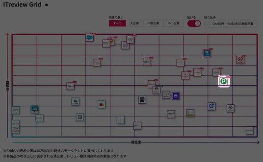 「ITreview Grid Award」は、「ITreview」に集まったレビューをもとに、利用者から高い満足度の得られたサービスを各カテゴリーから「Leader」「High Performer」として四半期ごとに発表しています。