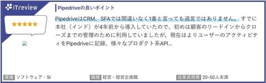 「Pipedrive」のレビュー一覧は下記よりご覧頂けます。