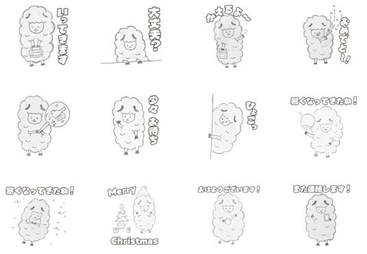 あえて鉛筆で描いたイラストをそのまま使い、色も付けませんでした。鉛筆の質感がスタンプでも伝わり、柔らかく温かい印象となっています。わずかな違いで表情が変わるため、メリーの目や口は線の長さや角度の細かなところまで気を配ってつくり上げました。32種類のスタンプには様々な場面で使いやすい「OK」、「ありがとう」、「お願いします」といった定番から、愛らしいメリーのイラストだからこそ伝えられるメッセージも入っています。