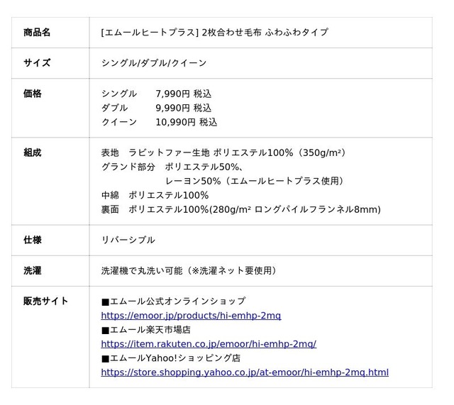 「身体に合った寝る・座る・たたむ」を提供する健康家具ブランドEMOORを展開する株式会社エムール(東京都立川市:代表取締役 高橋 幸司/以下エムール)は、2025年10月25日より『エムールヒート プラス 2枚合わせ毛布<ふわふわタイプ>』の販売を開始しました。