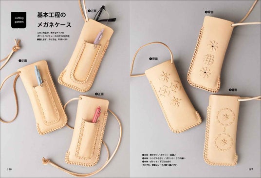 道具や縫い方などの革クラフトの基礎から、ペンケース、三角ポーチなどの小物、トートバッグ、ボストンバッグ、ショルダーバッグなど、誰もが作りたい大きめのバッグ、そして今回増補した「縁かがり」の装飾テクニックなど、より手作り感あふれる、個性豊かなレザーアイテム作りに挑戦できる一冊です。