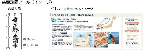 「すしの都 北九州協議会」会員店舗にのぼり旗等の「すしの都 北九州市」ツールを掲出します(掲出店舗:協議会会員約30店舗)。また、11月1日から、各会員店舗で飲食されたお客様先着50名に「すしの都 北九州市」オリジナルステッカーをプレゼントいたします!