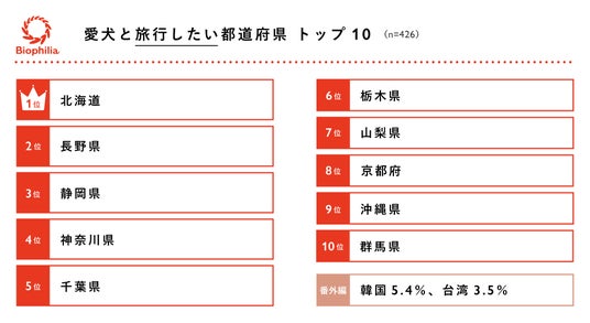 ■愛犬と旅行したい都道府県TOP10(n=426)