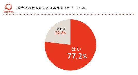 - 愛犬と旅行にいったことがある飼い主は77.2%