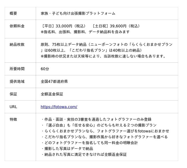 ■ 家族・子ども向け出張撮影プラットフォーム「fotowa」について