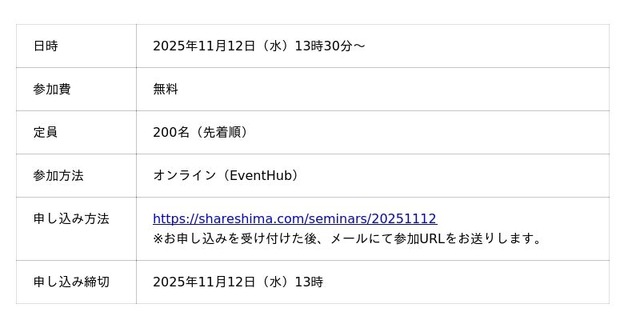 食品の企画開発をサポートする「シェアシマ」を運営するICS-net株式会社(本社:長野県長野市南石堂町1972、代表取締役:小池祥悟)は、食品業界に携わる人のためのオンラインセミナーを定期開催しております。オンラインセミナーの詳細はこちら:https://shareshima.com/seminars