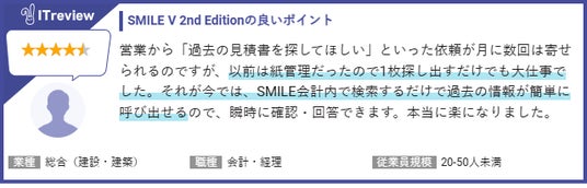 「管理のしやすさ」「サポート品質」「機能への満足度」などをご評価いただいている「SMILE V 2nd Edition」