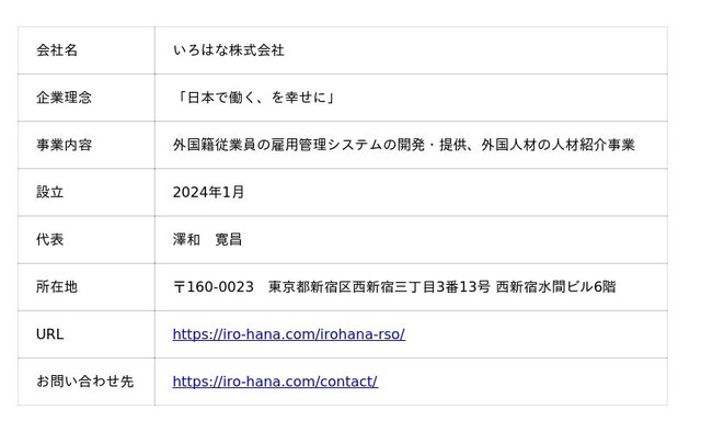 いろはな株式会社(本社:東京都新宿区、代表取締役:澤和寛昌、以下「いろはな」)が開発・提供する登録支援機関向け書類申請DXシステム「irohana visa for 特定技能」が、みとうメディカル株式会社(本社:大阪府大阪市、代表者:倉岡七恵、以下「みとうメディカル」)に導入され、運用を開始したことをお知らせいたします。