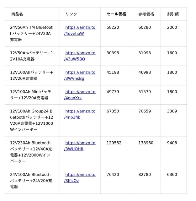 ●バッテリーと充電器、インバーターなどの関連製品をまとめ買いでさらに5~10%割引