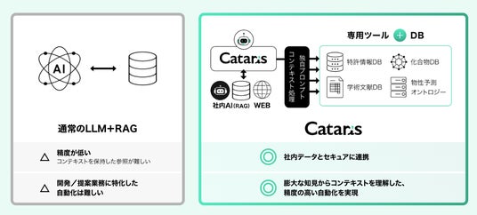Catarisは、素材の用途探索と改良提案をAIエージェントで自動化・高速化するCatarisを開発・提供しています。人とAIの協働によって、技術の新たな価値創出と産業構造の革新を目指します。企業HP:https://cataris.ai