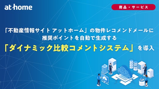 不動産情報サービスのアットホーム株式会社(本社:東京都大田区 代表取締役社長:鶴森 康史 以下、アットホーム)は、消費者に対しておすすめの物件を提案する「レコメンドメール」において、マーケティングシステムの企画・開発・運営を行う株式会社GFL(本社:神奈川県横浜市 代表者:田邊 学司 以下、GFL)と提携し、物件の推奨コメントを生成する「ダイナミック比較コメントシステム」を導入いたしました。