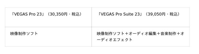 製品名、価格:「VEGAS Pro 23」(30,350円)