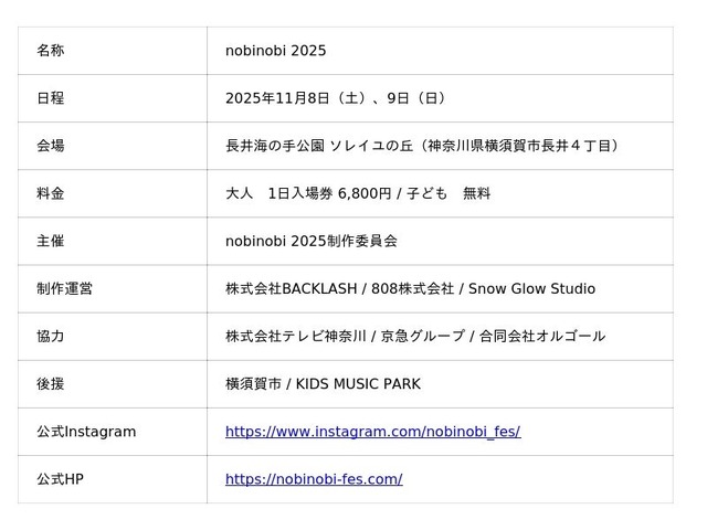 nobinobi公式サイト注意事項ページ:https://nobinobi-fes.com/caution