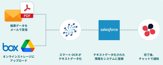 請求書や申込書、注文書といった帳票類を「スマートOCR」で読み取り、そのデータを「JENKA」を介してクラウドサービスへ自動登録することで、バックオフィス業務の大幅な省力化が可能です。特別なプログラミング知識を必要とせず、現場主導での業務改善を推進できます。