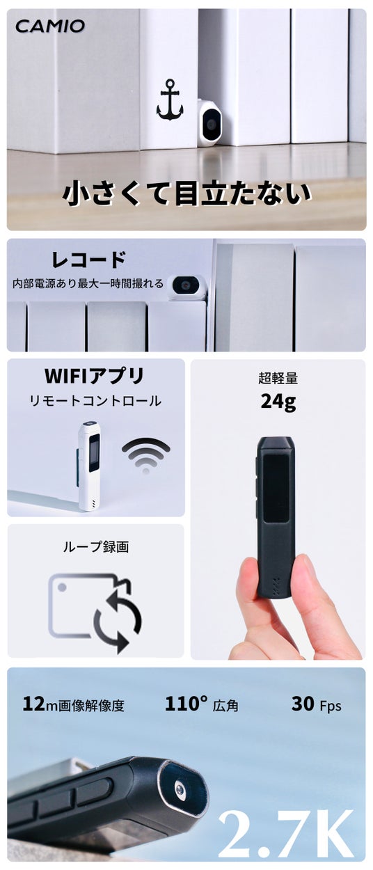 1.クリスタルクリアな2.7K HD録画2.超広角110°レンズとハンズフリーの利便性