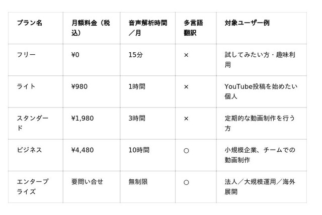 無料の「フリープラン」にご登録いただくことで、月15分の音声解析まで無料でご利用いただけます。まずは、「YOU CHANNEL」の革新的な編集体験をぜひお試しください。