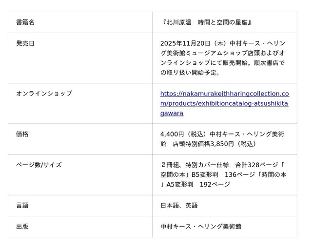 「空間の本」では、展覧会でインスタレーションを構成した6つの要素を軸に、北川原氏自身の言葉と数々の資料を通して建築のプロセスを紹介し、「時間の本」では、《中村キース・ヘリング美術館》竣工に至るまでの設計の変遷を、書き下ろしのテキストともにたどり、創造の源泉から実際の建築作品に至るまでのプロセスを公開。