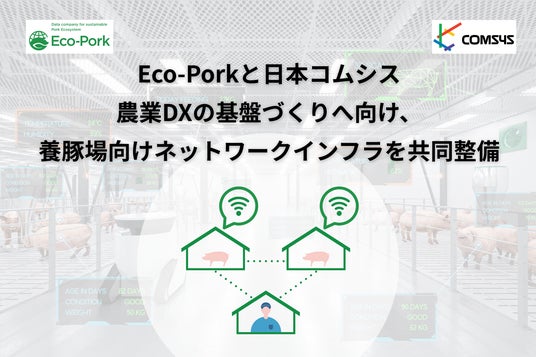 株式会社Eco-Pork(本社:東京都千代田区、代表取締役:神林 隆、以下「Eco-Pork」)と、日本コムシス株式会社(本社:東京都品川区、代表取締役 田辺 博、以下「日本コムシス」)は、養豚場向けネットワークインフラ整備に関する業務提携を締結しました。