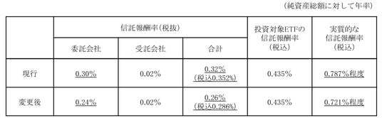 なお、投資対象とするETFの信託報酬率を含めた実質的な信託報酬率(税込)は、年率0.787%程度から年率0.721%程度に変更いたします。