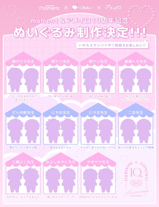 レーベル10周年を記念し、アニメイト池袋本店での展示やemo cafeでのコラボカフェ、ORIGOOぬいぐるみ販売など、様々なイベントを実施いたします。