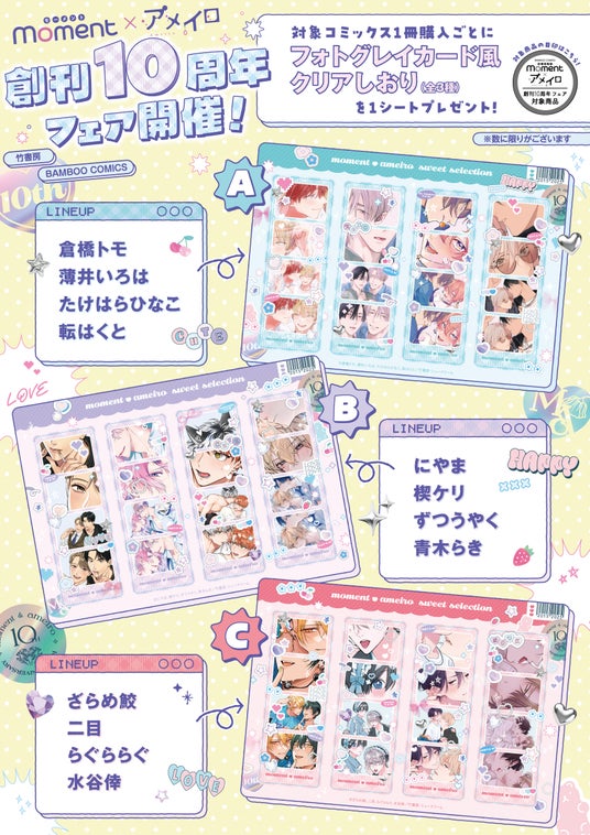 株式会社竹書房(所在地:東京都千代田区 代表取締役社長:宮田 純孝)は、2025年10月30日(木)より、『moment×アメイロ創刊10周年記念フェア』を開催いたします。