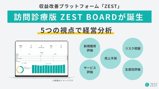株式会社ゼスト(本社:東京都新宿区、代表取締役社長 CEO:一色淳之介)は、この度、訪問診療に特化したダッシュボード「訪問診療版 ZEST BOARD」の提供を開始しました。本機能は、「ZEST」でスケジュールを作成するだけで、自動的に経営指標を集約・計算し、データに基づいた経営判断をサポートします。
