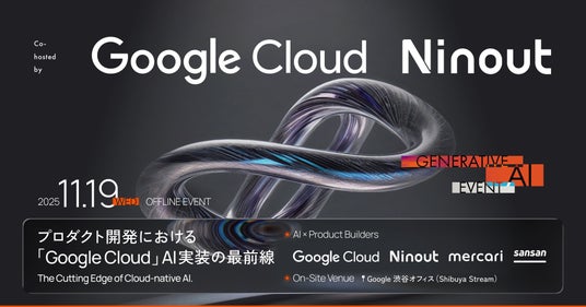 ナインアウト株式会社(以下、Ninout)は、グーグル・クラウド・ジャパン合同会社と共催で生成AIを活用したプロダクト開発の最前線をテーマにしたオフラインイベント「プロダクト開発における『Google Cloud』AI実装の最前線」を、2025年11月19日(水)に渋谷ストリーム内の Google オフィスにて開催いたします。
