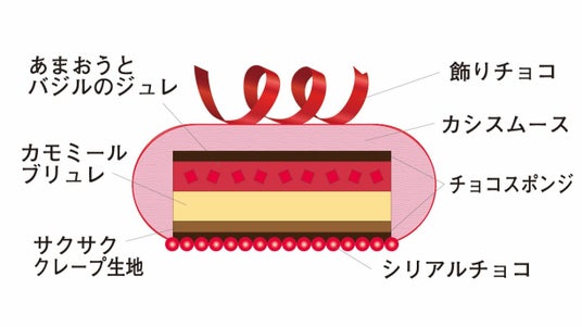 赤く艶めくグラサージュに包まれたカシスムースとあまおうのケーキ。バジルとカモミールが香る、華やかなクリスマスケーキで特別な夜を彩ります。