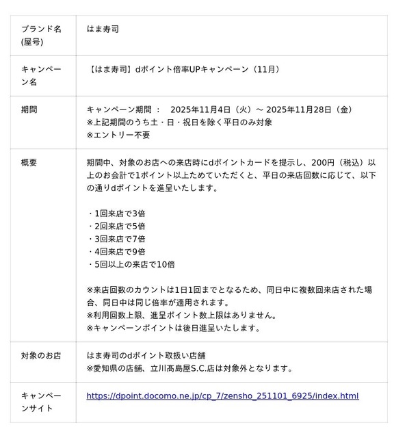 株式会社NTTドコモ(以下、ドコモ)は、「dポイント」「d払い(R)」においておトクなキャンペーンを開催いたします。詳細は、下表のとおりです。