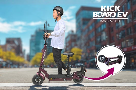 「キックボードEV ベーシックモデル」は、令和5年7月1日の道路交通法改正の施行にて新設された車両区分「特定小型原動機付自転車」に対応する電動キックボードです。