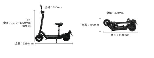 16歳以上免許不要の車両区分「特定小型原動機付自転車(特定原付)」に対応する椅子付き電動キックボードです。