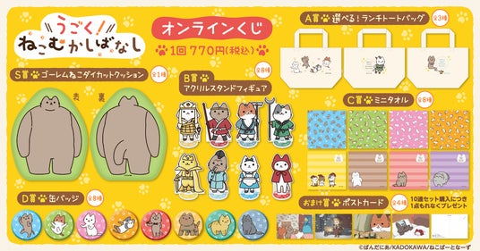 株式会社KADOKAWA(本社:東京都千代田区、取締役 代表執行役社長 CEO:夏野 剛、以下 KADOKAWA)は、運営するオンラインくじサービス「くじ引き堂」において、アニメ「うごく!ねこむかしばなし」の豪華賞品が手に入る<アニメ「うごく!ねこむかしばなし」オンラインくじ>を、2025年11月6日(木)17時より販売します。