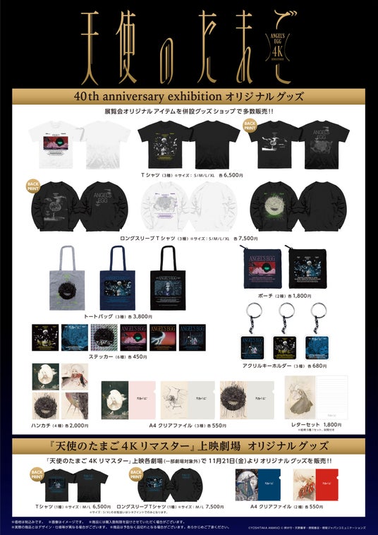 『天使のたまご4Kリマスター 』上映各劇場(一部劇場対象外)でも11/21(金)よりオリジナルグッズ、 11/14(金)よりファン必見のパンフレットを販売!