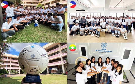 本プロジェクトの第一弾として、OURがタイトルスポンサーを務めた「レアル・ソシエダ ジャパンツアー2025 レアル・ソシエダ vs 横浜FC PRESENTED BY ONODERA USER RUN」の開催記念として、横浜FCおよびレアル・ソシエダの選手の直筆サイン入りサッカーボールとともに、スポーツを通じた国際交流と、学生たちの夢や挑戦を後押しすることを目的として、横浜FCを代表して山田康太選手より、OUR BLOOMING ACADEMY(OUR海外無償教育施設)で学ぶ学生たちへ応援メッセージをいただきました。