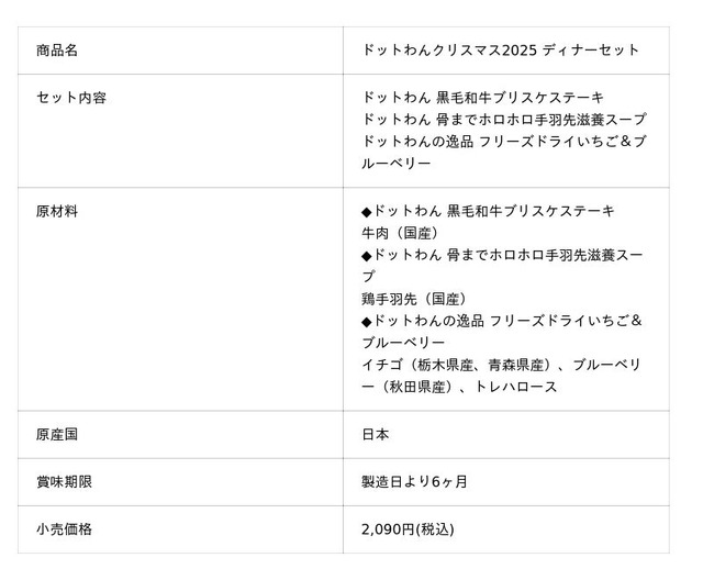 「ドットわんクリスマス2025 ディナーセット」パッケージ画像