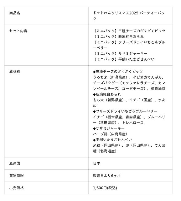 「ドットわんクリスマス2025 パーティーパック」パッケージ画像