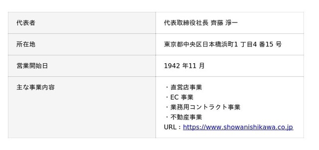 昭和西川株式会社( 以下、昭和西川) が直接運営する3 店舗での販売取次を、