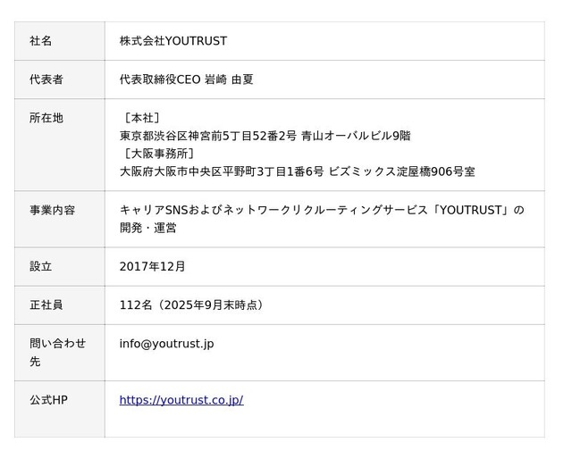 ▶ 採用支援「YOUTRUST TALENT」:https://lp.youtrust.jp/recruiter