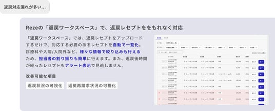 さらに、今回のレセプト診断結果で明らかになった課題については、Rezeの導入により、継続的かつ具体的な改善へとつなげることが可能です。