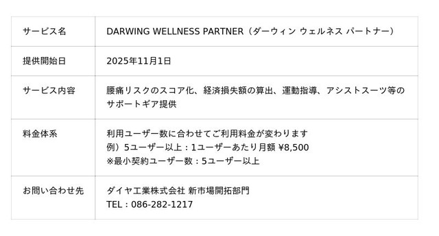 この監修体制により、「DARWING WELLNESS PARTNER」は、現場の実務と医療・研究のエビデンスを橋渡しするプログラムとして設計されています。企業が「人的資本」の観点から腰痛リスクを定量的に把握し、改善策を社内に根付かせることを目指します。