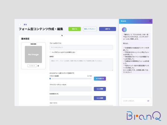 ■ 1. チャットで完結。AIがフォームを自動生成BranQ AIは、チャット形式で目的を伝えるだけでフォームを自動作成。