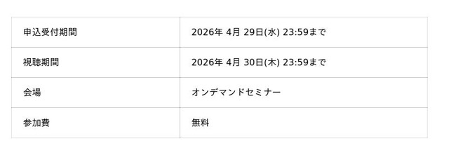 NECネクサソリューションズは、「スマートファクトリー実現のための設計開発&生産現場改革」セミナーを、2026年 4月30日(木)までオンデマンド配信しています。お申し込みは2026年 4月29日(水)まで受け付けています。