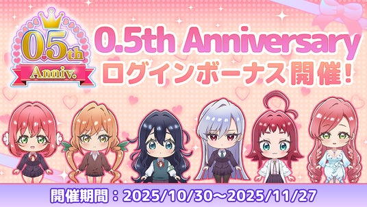 本日10月30日(木)よりハーフアニバーサリーを記念して、「0.5周年記念 ログインボーナス」を開催します。期間中のログインで「100パズプレミアムガチャチケット×10」を入手することができ、最大100連分のガチャを引くことができます。毎日ログインして報酬をゲットしよう!