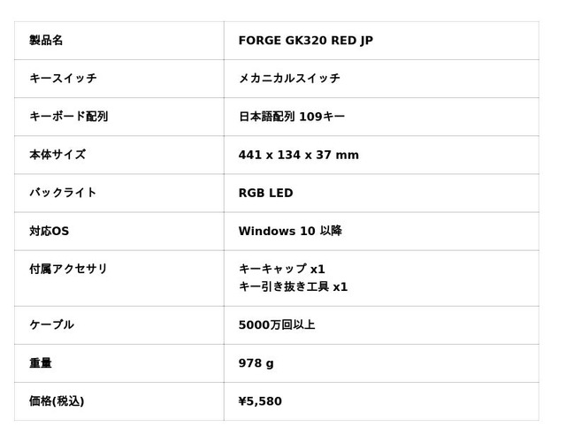 https://jp.msi.com/Gaming-Gear/FORGE-GK320