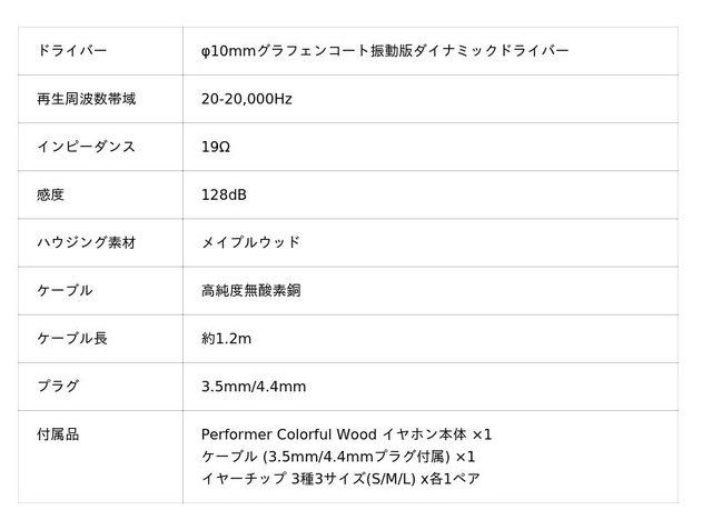 Performerの良さをそのままに、ハウジング材質を木に変更することにより、一味違った音楽体験をお楽しみいただけます。