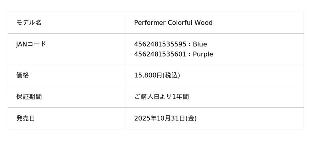 品質と価格の優れたバランスが高く評価され、好評を博している"Performer"をウッドハウジング化、その名も、"Performer Colorful Wood"が登場です。