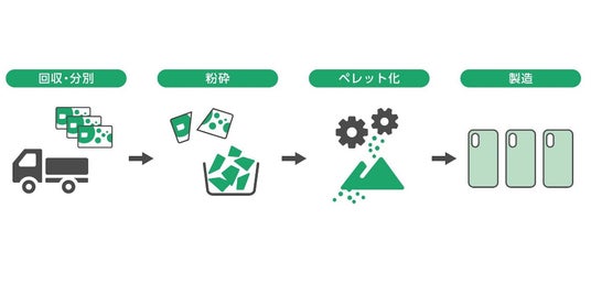 お客さまからの回収品をリサイクルして自社の商品へ利活用したスマートフォン用ケース。