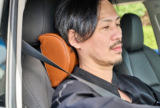自然なS字カーブを意識した立体クッション形状で、首のラインにしっかりフィット。現代人の運転姿勢に合わせた人間工学設計で、快適さが向上。