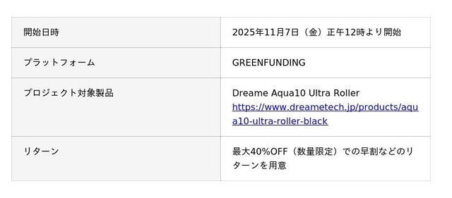 フォーカルポイント株式会社(本社:東京都港区、代表取締役 恩田英樹 以下フォーカルポイント)は、スマート家電ブランドDreame Technologyの国内代理店として、最新のフラグシップモデルであるロボット掃除機「Aqua10 Ultra Roller」のクラウドファンディングを11月7日(金)正午12時よりGREEN FUNDINGにて開始します。